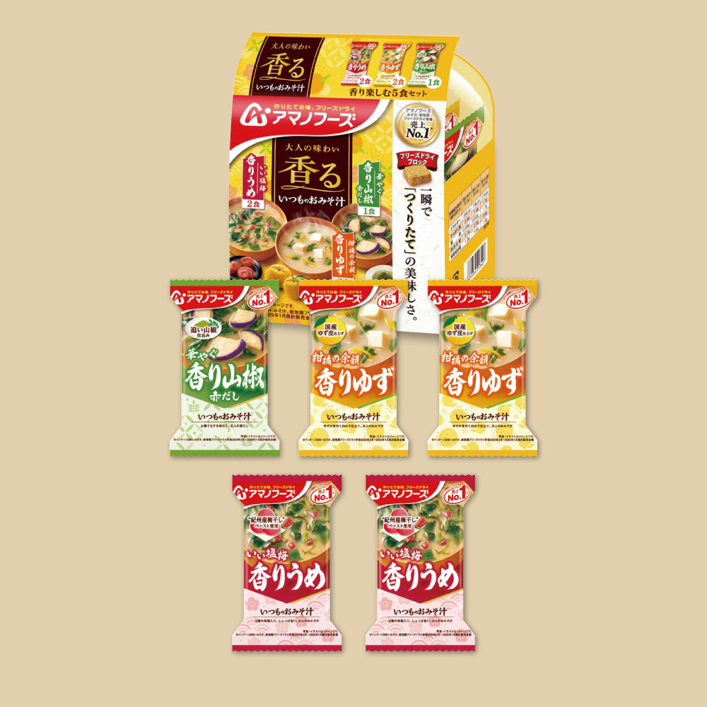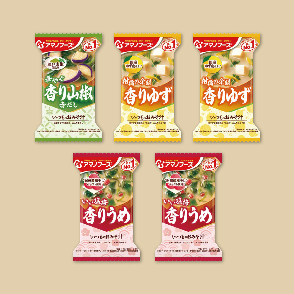 5食入/箱(【いつものおみそ汁】香り山椒(1食)、香りゆず・香りうめ(2種類×各2食))
