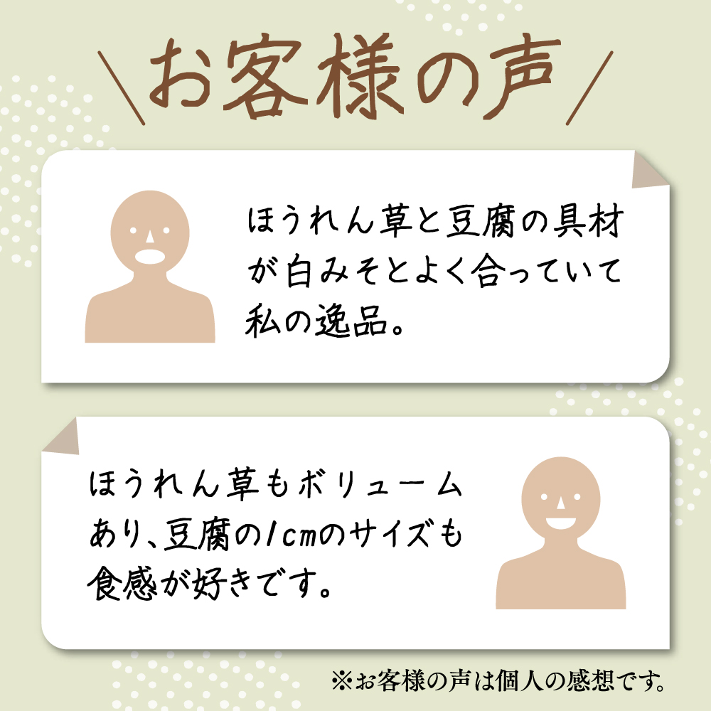 豆腐とほうれん草の相性がとてもいいです。また買おうと思います。