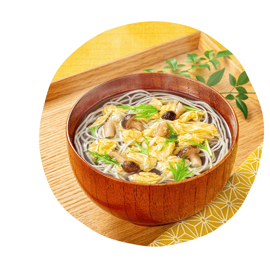 かき玉子の彩りにしいたけとゆずの風味が心地よいさっぱりとしたすまし汁。