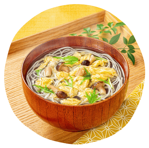 だしの旨みを効かせて具材本来の持ち味を活かした彩りも鮮やかな美味しさで人気のにゅうめんです。おみそ汁の代わりの汁物としても人気です。